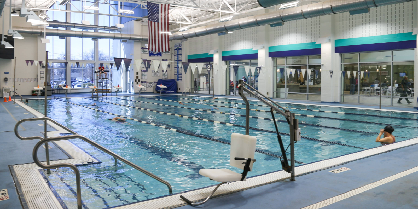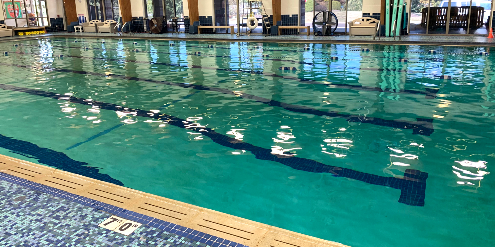 Six lane, 25-meter lap pool utilized for lap swim and aquatics group exercise classes